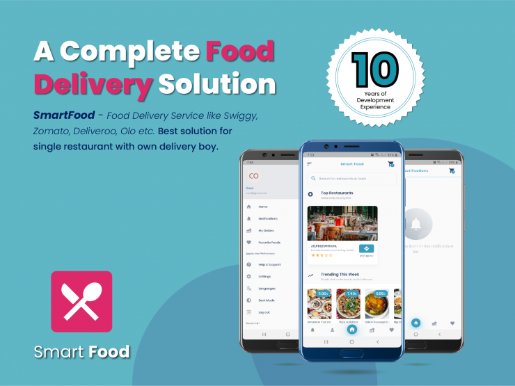 SmartFood: Complete food delivery app like Zomato/Swiggy for single restaurants. Own delivery boys, nearby ordering, trending foods — 10+ years expertise.